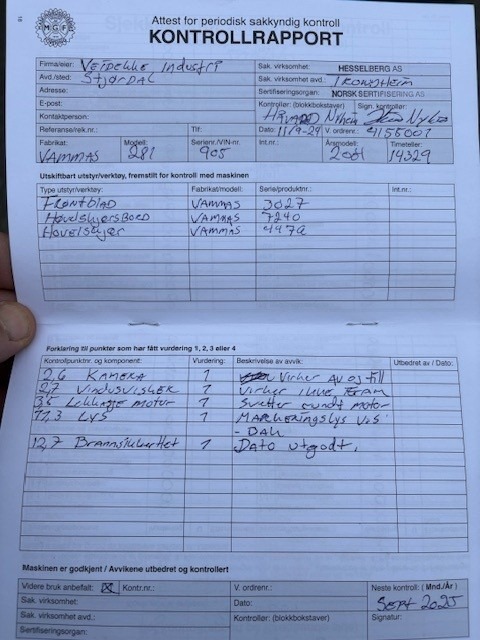 - NotesDet har blitt utført årlig service på maskinen. Mindre feil er fortløpende utbedret.